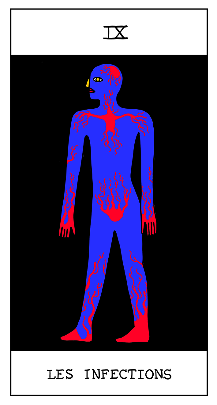 Illustration d'un tarot divinatoire à visée préventive, conçu pour sensibiliser à la réduction des risques en milieu festif. Projet réalisé pour l'organisme Safe Ta Night (réseau bruxellois de santé en milieux festifs) au sein de Digizik.